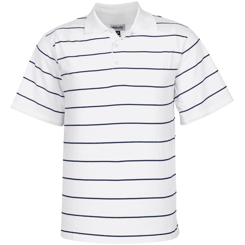 Classic and contemporary style gents short sleeve golfer is perfect for both corporate and casual everyday wear. The design features a unique yarn-dyed contrast horizontal feeder stripe detail, knitted collar. Locally manufactured.